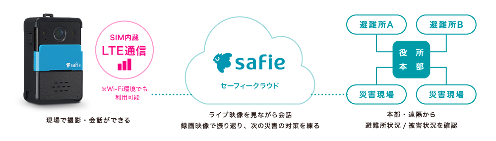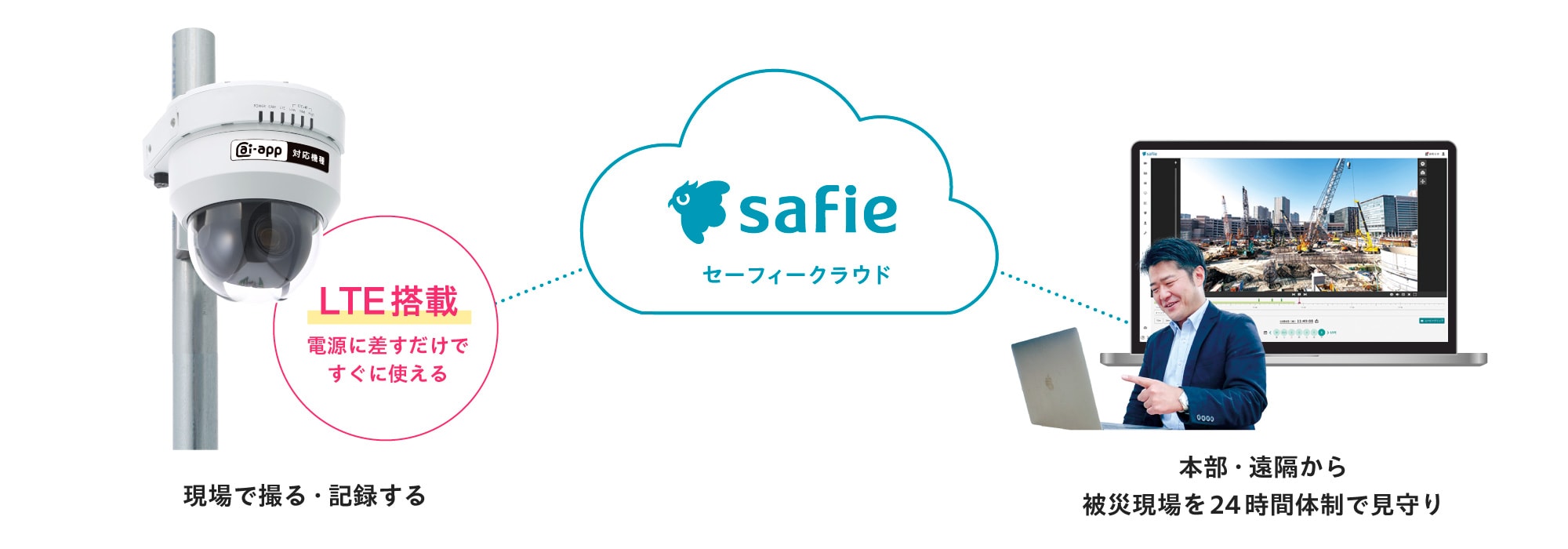 セーフィーでは災害支援として、災害時、遠隔からの被災現場の状況把握や、よりスピーディーな意思決定を可能にするため、カメラの映像をクラウド化し、誰もが活用できる映像プラットフォームを無償提供します。また、災害発生を想定した平時からの準備や連携を想定した災害連携協定の締結も検討しています。