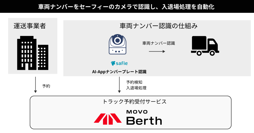 クラウド録画サービスシェアNo.1(※1)のセーフィー株式会社(東京都品川区、代表取締役社長CEO 佐渡島 隆平、以下「セーフィー」)とデータの力で物流課題を解決する株式会社Hacobu(東京都港区、代表取締役社長CEO 佐々木 太郎、以下「Hacobu」)は、荷待ち・荷役時間短縮への貢献を目指すべく、セーフィーが提供・開発するクラウドカメラおよび車両の入退場を管理する「AI-App ナンバープレート認識」(※2)と、Hacobuのトラック予約受付サービス「MOVO Berth(ムーボ・バース)」との連携を開始します。本連携ソリューションは、株式会社MonotaRO(大阪府大阪市:代表執行役社長 田村 咲耶、以下「MonotaRO」)の協力のもと、笠間ディストリビューションセンターにて実証実験を行いました。