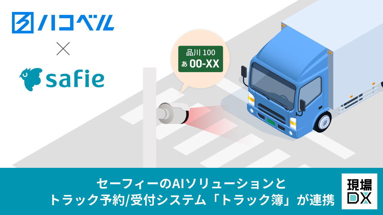 クラウド録画サービスシェアNo.1(※1)のセーフィー株式会社(東京都品川区、代表取締役社長CEO 佐渡島 隆平、以下「セーフィー」)と「物流の『次』を発明する」をミッションに掲げるハコベル株式会社(東京都中央区、代表取締役社長CEO 狭間 健志、以下「ハコベル」)は、荷待ち・荷役時間短縮への貢献を目指すべく、セーフィーが開発・提供するクラウドカメラおよび車両の入退場を管理する「AI-Appナンバープレート認識」(※2)と、ハコベルが提供する3年連続成長率No.1(※3)のトラック予約/受付システム「トラック簿」との連携を開始します。